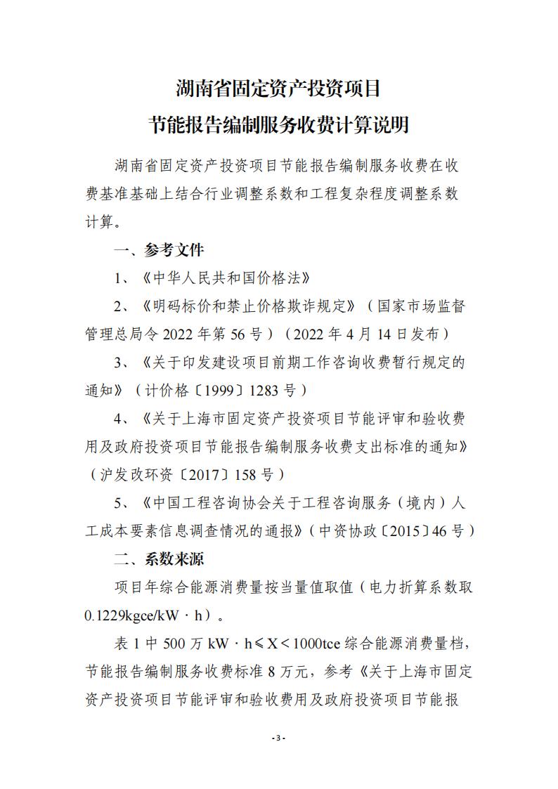 關(guān)于印發(fā)《湖南省固定資產(chǎn)投資項(xiàng)目節(jié)能報(bào)告編制服務(wù)收費(fèi)參考標(biāo)準(zhǔn)》的通知